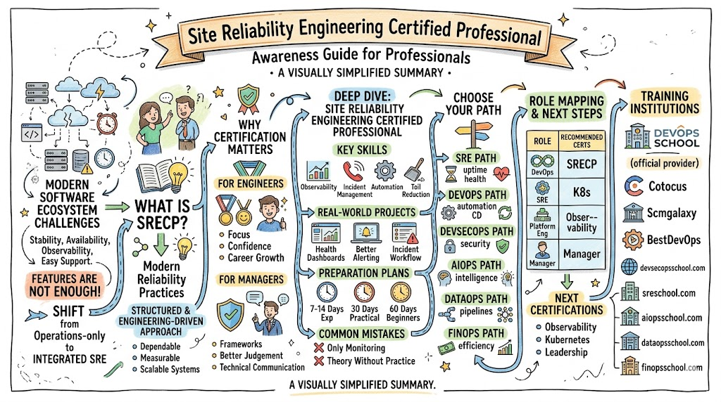Sreschool focuses on the disciplines of reliability and performance. Their training programs are designed for engineers who want to specialize in keeping complex systems stable and available using modern SRE methodologies.