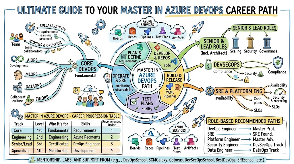 Master in Azure DevOps is a comprehensive professional framework that treats the entire software development and deployment cycle as a single engineering discipline. It exists to provide a standardized, production-focused methodology for shipping software that is secure, compliant, and highly available. This program emphasizes a “production-first” mindset, ensuring that practitioners are prepared to handle the high-concurrency and high-availability demands of modern business.